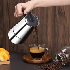 MUSA USA B120-42V Aluminum Espresso Stovetop Coffeemaker 3-Cup, Silver