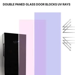 - UV Protective Glass Door: Double-paned mirrored glass door protects your wine from damaging UV rays while soft interior lighting subtly highlights your wine collection