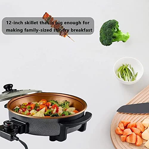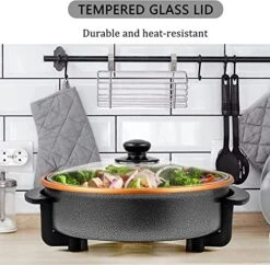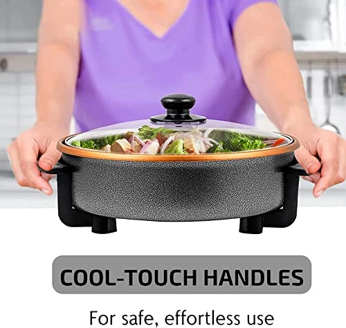 - Convenient and Safe – Cooking using Electric Portable Skillet is made easy with its glass cover handle and cool-touch handles that secure grip and protect hands from heat or injuries.