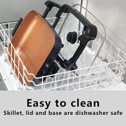 - Easy-to-clean dinner plate warming tray: Once the cord is removed from the one-pot cooker, the pan, lid and base can be placed in the dishwasher for easy cleanup.