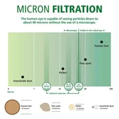 - 5 micron filtration – reduces sediment smaller than the human eye can see. NSF Certified to Standard 42 for removal of particulate class V.