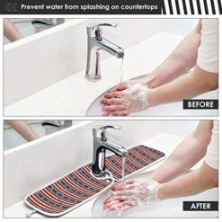 - OCCASION: The adaptable design of the faucet splash-proof pad is suitable for kitchen bar, sink, bathroom sink and RV faucet, etc. It absorbs water quickly, keeps it dry and tidy, and can protect the countertop. The faucet kitchen countertop mat is soft and foldable, easy to store; neatly packaged and not easy to fall off.
