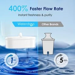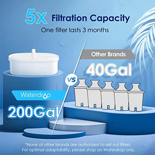 - [5x Longer Lifespan]: The filter water pitcher has a filter lifespan of up to 200 gallons or 3 months, which is 5x that of competing products. With an extended lifespan, you can purify your drinking water for longer. The flow rate of the Waterdrop filter pitcher is also 5x that of competing products, ensuring the maximum filtration effect and faster delivery of clean drinking water.
