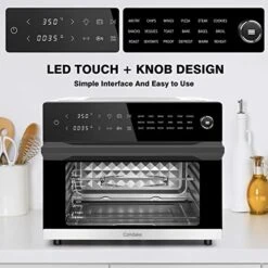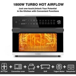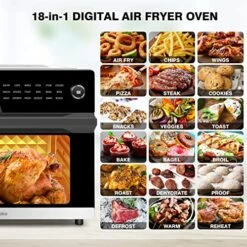- 【18 Presets Available】18 preset settings are available. With only one press, This oven can be used as an air frying pan, a pizza oven, a convection oven, a toaster, a dehydrator and a barbecue oven to complete the functions of air frying, baking, baking, barbecue, toast, dehydration, barbecue, thawing and heating. Easily make complex recipes to enrich the flavor of dishes.