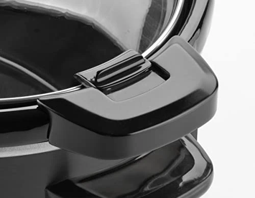 - INTEGRATED LID LATCH: The sliding latch in the handle connects the stoneware insert and the glass lid for convenient transporting and serving.