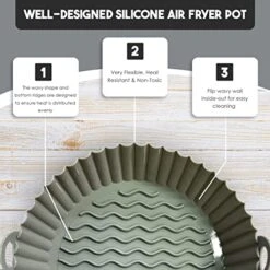 - REUSABLE AND PREMIUM QUALITY: Our silicone insert for air fryer is made with high quality food grade stretchable silicone and has high temperature heat resistant up to 464 ° F (240°C). This silicone pot for air fryer is completely recyclable and environmental friendly, making your time and money worth spending!