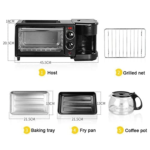 AMAYYAmbj Bread Maker 3-in-1 Breakfast Machine Coffee Maker Cooker Teppanyaki Bread Pizza Oven Egg Omelette Frying Pan Toaster