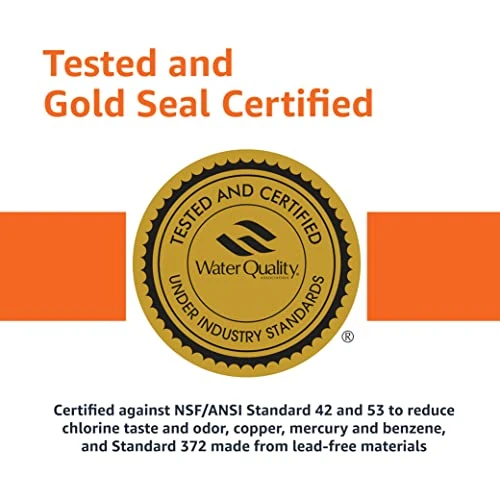 - WQA CERTIFIED: Gold seal certified by the Water Quality Association against NSF/ANSI 42, 53 and 372. Certified to reduce chlorine taste and odor, copper, mercury and benzene. Made from lead free materials. BPA free.