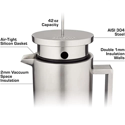 - LIFETIME REPLACEMENT GUARANTEE – This large camping coffee press is made of AISI 304 stainless-steel with the same 14-gauge industry standard material used for building construction – a metal French Press coffee maker built to last