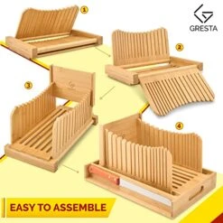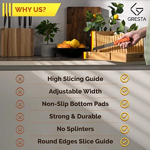 - Upgrade your bread game with our bread loaf slicer! This bread cutter for homemade bread is made of durable bamboo and is adjustable to fit any size loaf. It’s easy to use and easy to clean, so you can enjoy fresh, perfectly sliced bread every day.