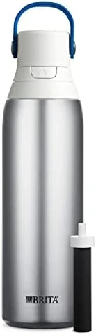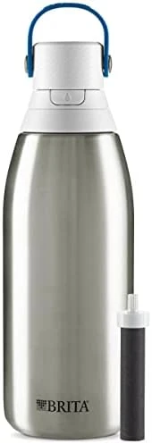 - This 20 oz Brita water bottle is made from durable, double wall insulated stainless steel to keep water cold; this sleek, leak proof design is cup holder friendly; Height 10.5 inch ; Diameter 3 inch ; Weight 1 pound