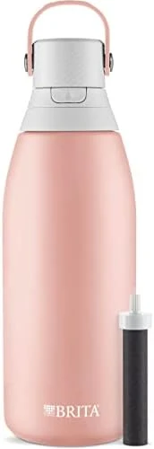 - This 32 oz Brita water bottle is made from durable, double-wall insulated stainless steel to keep water cold and features a leak-proof lid; Height 10.6″; Diameter 3.8″; Weight 1.1 pound