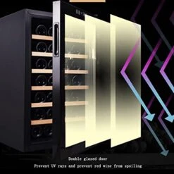 - ★【Perfect design】 The wine cabinet is made of high quality stainless steel and glass. The shape is bright and bright, strong in texture, durable and wear-resistant, high-quality sealing strip, quiet work, small footprint and stable placement.
