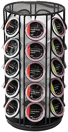 - STACKED STORAGE – This unique storage carousel holds seven rows of five single serve coffee pods, for a total of 35 pods stored at one time