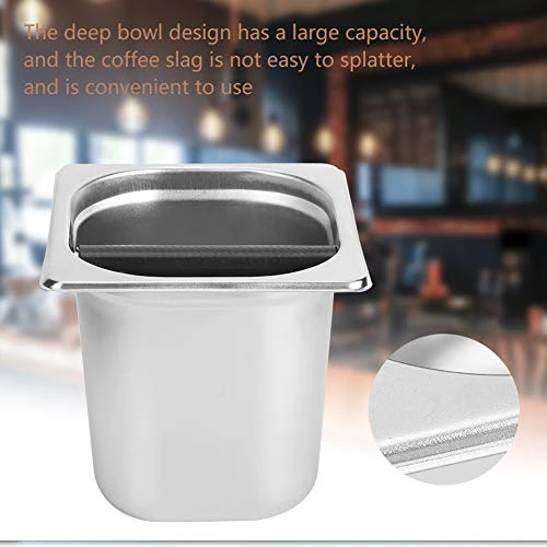 Made of high quality stainless steel, it is durable, corrosion resistant and resistant to rust.The deep bowl design has a large capacity, and the coffee slag is not easy to splatter, and is convenient to use.The main rod is made of ITL engineering rubber for excellent cushioning and protects the coffee machine handle.Professionally manufactured, beautiful in appearance, durable and long lasting.It is an ideal accessory for professional semi-automatic coffee machines, suitable for cafes, restaurants and bars.