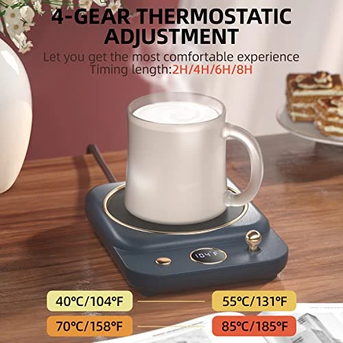 - 4 timer insulation, 4 heating temperature settings and 2 kinds of temperature switching: Coffee, beverage,milk,tea,water and hot chocolate can be heated to the following 4 temperatures: 40℃/104℉, 55℃/131℉, 70℃/158℉, 85℃/185℉, Zeattain electric coffee warmer can set 4 holding time, 2H,4H,6H,8H, this smart cup warmer can be switched 2 temperature units:℃and ℉