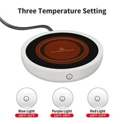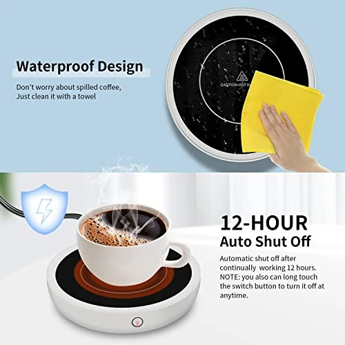 - 🎁SAFE & RELIABLE – The coffee mug warmer is integrated with 50W power heating body. Adopt high-strength glass surface, even splashing water on the heating plate by accident, there is no risk for security concern, safe and reliable. [NOTE: The outside of the heating ring will also have a certain temperature affected by heat conduction. Please do not touch the black plate surface after turning it on or turning it off for a period of time.]