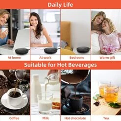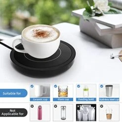- Heating coffee mug can keep warm different coffee, candle, tea, milk, cocoa. Suitable for most cups, glass cup,Ceramic mug, stainless steel cup, tableware, milk box, it works best if you use a flat-bottomed cup. And with a convenient 63″ length cord for use almost anywhere.