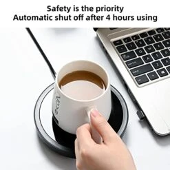 - This cup warmer will shut off after working for 4 hours, this means you don’t have to worry about forgetting to turn it off. Also the warmer is FCC certified for safe use in homes and office desk