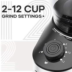 - ☕[Grinding Time Adjustable ] 2-12 cups Timer selection with led indicator .230g big coffee bean chamber and a container around 150g to keep ground coffee, which can meet all daily use or coffee storage.