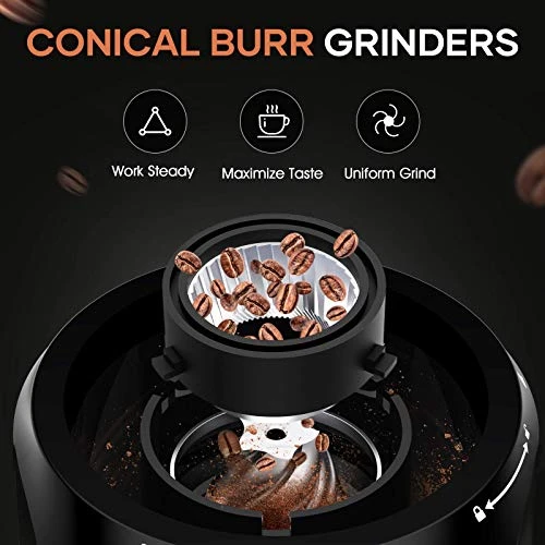 - 🌀[High Quality Grinding System]: Stainless steel conical burr grinder for uniform grinding coffee and durable using Powerful motor with low working speed , keep the most original coffee flavor and low noise.