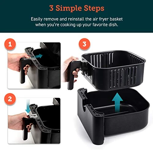 - User Friendly: Place the basket into the air fryer and remove with ease, thanks to the removeable rubber stopper.