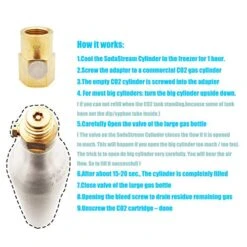 - Easy To Use-The Soda Machine Co2 Refilling Station Adapter can easily inject carbon dioxide into the soda water bottle,there are more detailed steps in the description.The cylinder should be empty.drain off remaining gas by screw driver.Pre Cooled cartridges will get quite full.