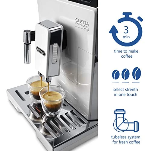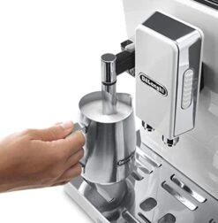 - PROFESSIONAL Brew two cups of magic drink simultaneously with Top-of-the-line Delonghi bean-to-cup brews two cups. Great brewing without having to learn how to be a barista. This fully automated machine has an integrated silent coffee grinder with 13 adjustable grinding settings, a bypass doser, a pump generating up to 15 bars of pressure, a water filter, a double boiler system, an automatic milk frother, a milk jug and cup warmer, as well as electronic temperature control.