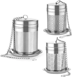 - Our loose leaf tea infusers tea strainer features threaded connection design, makes you feel easier to open and close when using. They seal more tightly so tea leaves will not leak out during the process of brewing.