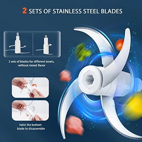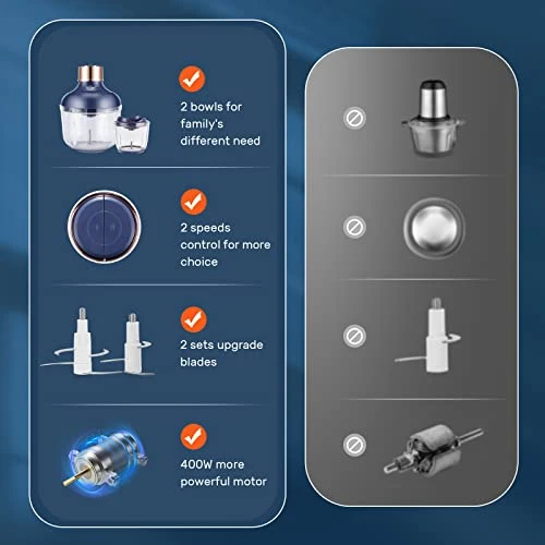- Better Performance: With a 400W motor and sharp stainless steel blades, this food processor allows you to chop, blend, puree, mix, and mince a variety of ingredients in no time. Its unique blade design with 4 layers ensures even cutting, providing better performance compared to other food processors