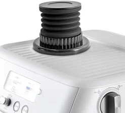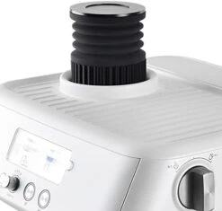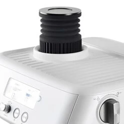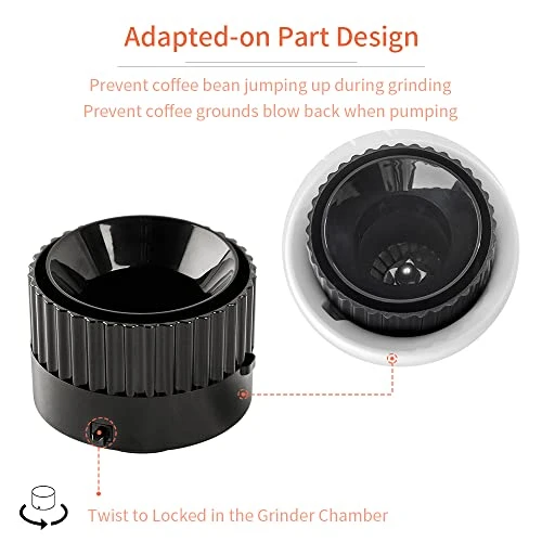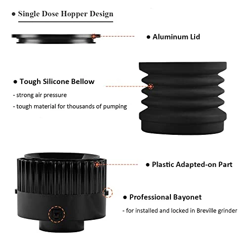 - 【Unique Design 2 in 1 Function Dose Hopper for Breville】- Detachable cover design for easily pour in coffee beans; Unique adapted-on part design, prevent coffee bean jumping up during grinding, and prevent coffee grinds blow back when pumping; Tough silicone bellow with aluminum lid for thousands of pumping, can be used for a long lasting time.