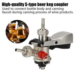 - High‑quality S‑type beer keg coupler with pressure relief valve, suitable for most beer barrels and cola barrels.