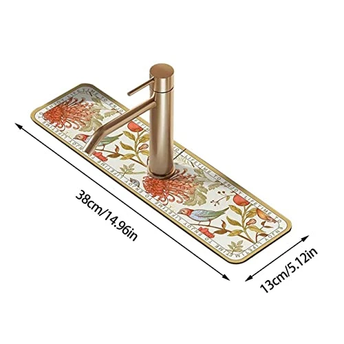 - Package Contents: You will receive a set of 1 wraparound faucet splash catcher, which measures about 38x14cm/15×5.5inch, which is perfect for your faucet keeping clean and dry. Our wraparound faucet splash catcher features exquisite patterns, which makes it a great kitchen decoration.