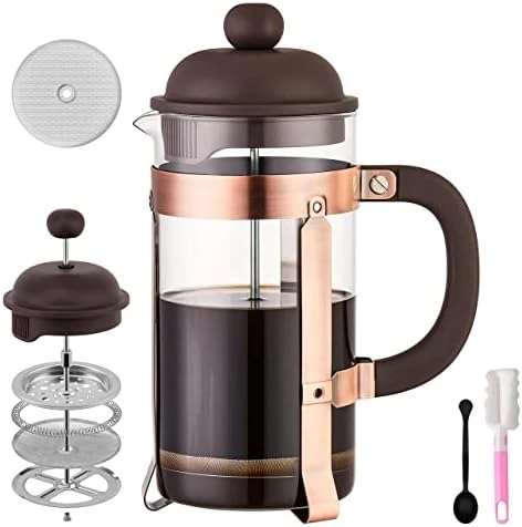 - 3 Filters: If you’re a coffee lover and crave an espresso; our coffee press has a three-layer filtration system that ensures smooth brewing every time; this french press does not absorb the flavor or oil of the coffee and keeps the flavor intact so you always get the real flavor.
