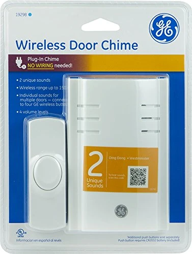 Never miss a visitor with the GE plug-in two-melody wireless door chime. The wireless, portable design allows you to move the unit to any area of your home, whether you’re working in the garage, personal office, backyard or relaxing on the patio. With two melodies, you can program and personalize multiple doors by connecting up to four GE wireless push buttons. Includes one push button and one plug-in chime. Installation is easy, simply plug-in to a wall outlet and enjoy! skip the wired mess and enjoy immediate chime function with the GE plug-in two-melody wireless door chime. This product is ul listed and backed by a 1-year limited warranty.