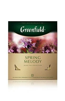- Greenfield Spring Melody Black Tea is packaged in 100 paper bags. The foil perfectly preserves the properties of tea, protects the product from light. A pack of 100 bags of Greenfield Spring Melody black tea is ideal for office tea drinking.