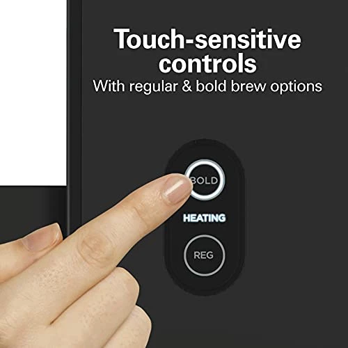 - TOUCH-SENSITIVE CONTROLS WITH REGULAR AND BOLD BREW OPTIONS: These high-tech, capacitive-touch controls are sensitive to a light tap, so it’s easy to select your settings, such as brewing coffee with regular or bold strength.