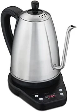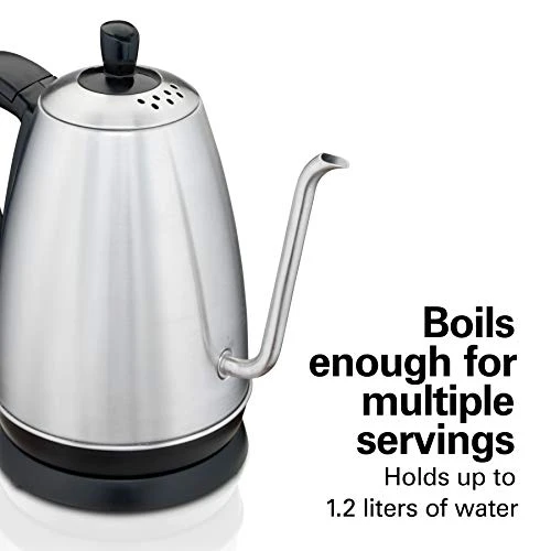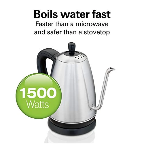 - PRECISION POURING. The slender gooseneck spout on the Hamilton Beach electric kettle gives you full control when pouring hot water in tea cups, travel mugs, or any beverage container and is perfect for crafting pour-over coffee.