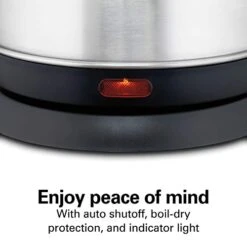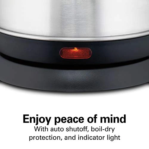 - PEACE OF MIND WITH AUTO SHUTOFF, BOIL-DRY PROTECTION, & INDICATOR LIGHT: The stainless steel kettle has auto shutoff and boil-dry to protect against scorching. The indicator light illuminates when the kettle is on.