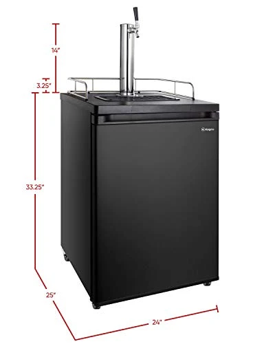 - Thanks to a large interior that can hold up to three 5-gallon homebrew kegs, this keg beer dispenser will allow you to tap one home-brew keg while keeping two more perfectly cool and ready to dispense. It can also hold a 6 gallon bucket or carboy for use as a fermentation chamber. This keg dispenser measures 33″ H x 23-11/16″ W x 23-15/16″ D.