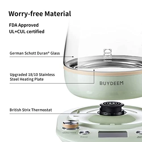 - What You Get: BUYDEEM K2763 Lite, Glass Stew Pot, Stew Pot Storage Rack (Steamer ande Infuser not included) , User Guide, 1-year warranty and friendly customer service