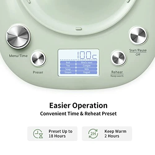 - Magic Stew Pot: Using kettle and glass stew pot(480ml) make yogurt, porridge, rice, soup and egg custard is not difficult. You can also just use the kettle without stew pot to make fruit tea or lemon tea.