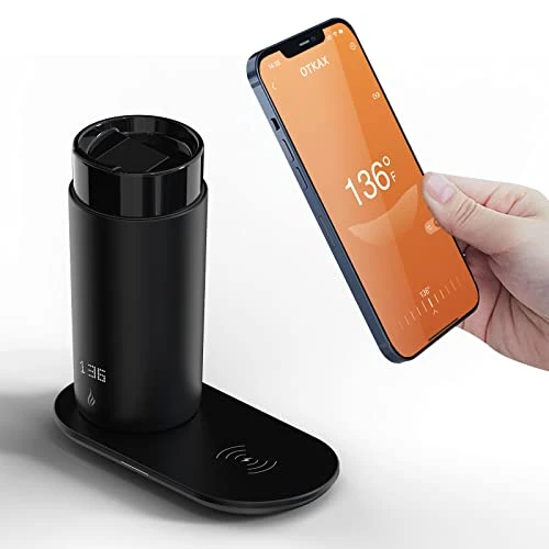 - MANUAL & APP CONTROL: This self warming coffee mug has two methods of temperature control for you to choose from.You can adjust the temperature directly through the touch button on the smart travel coffee mug and the OTKAX APP on your phone.