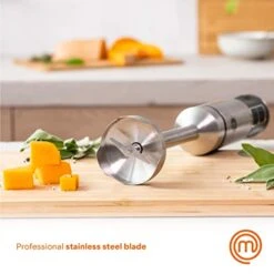 - STAINLESS STEEL – All three attachments are made of professional grade, stainless-steel. The durable strong blender blades can handle soft and hard ingredients to make deliciously healthy smoothies and shakes, blend hearty soups, puree baby foods and more.