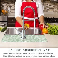 - 【Easy to Clean】You will receive 2 pieces of kitchen faucet absorbent mat,convenient for you to replace another piece after 2-3 days of use. You can wash it by hand.It can be cleaned in 2 minutes. If you are not satisfied for any reason, please contact us and we will resolve any issues you may be facing within 12 hours.