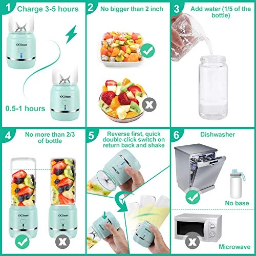 - EASY TO CLEAN PORTABLE SMOOTHIES MIXER & WARRANTY – Mini blender one button safety lock design, press down and twist it until you feel it click into right lock place. There is a silicone cover to prevent water stains getting in the USB interface. This blender has smart protection device, magnetic sensing switch safe to use and clean, the juicer cup’s body and bottom can be separated, you can easy to clean it. Any question, feel free to contact us, we’re always here to help.