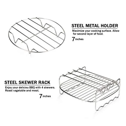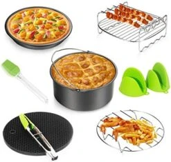 - High Quality:All deep fryer accessories are made of food-grade materials to protect your family health.The Pizza pan an cake basket was made of Teflon, heat-resisting, non-viscous, stand wear and tear with FDA certification. And all accessories are dishwasher safe for each cleaning
