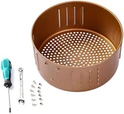 - This project includes:1* golden frying basket,2*screwdrivers,6*screws,6*nuts