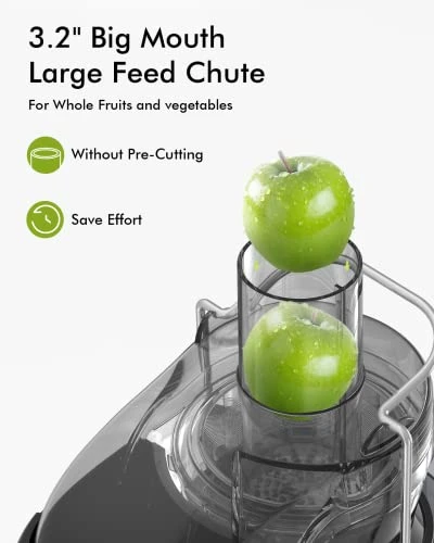 - Special Feature: 3.2″ Big Feed Chute, Powerful Motor, Whole Fruit Processing, Manual, Longevity, Dishwasher Safe