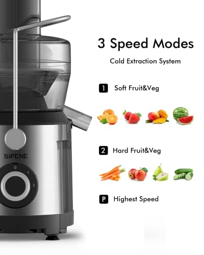 - 【Better taste with Less Pomace】Sifene juicer machine pro with cold extraction technology and germany-made stainless steel mesh filter, allows you to get purer taste juice, cold extraction means less damage to the vitamins and other nutricents during processing.